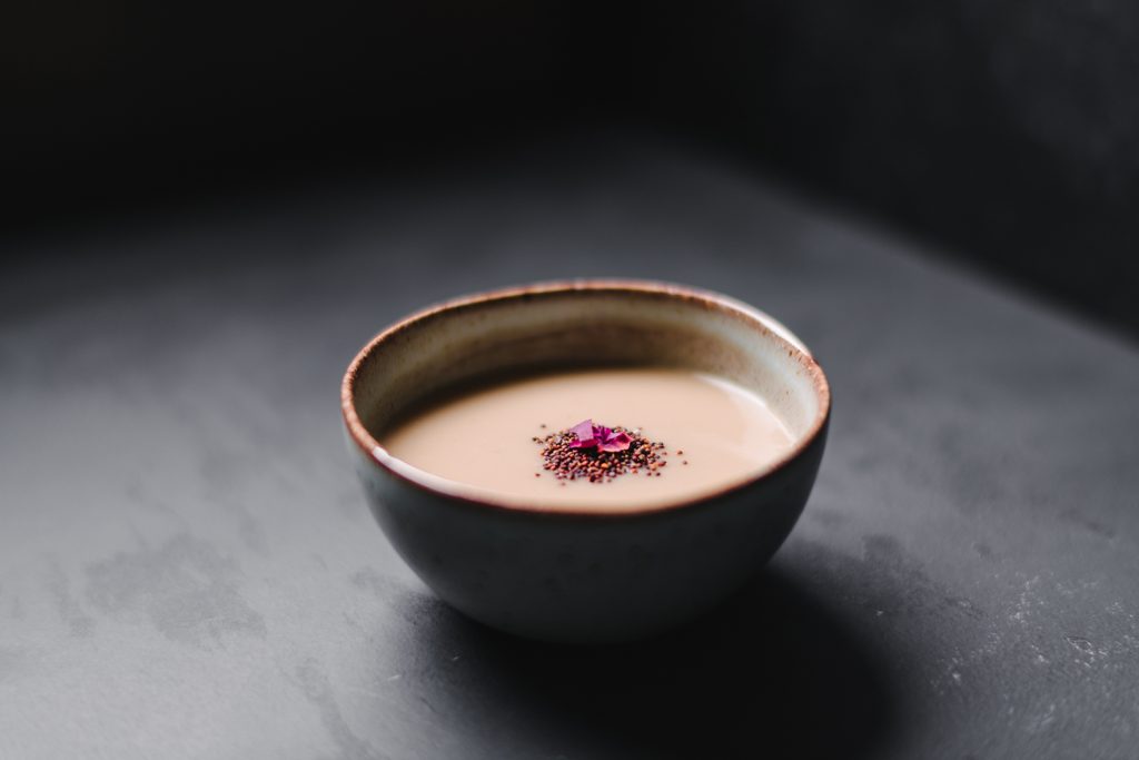 Maronischaumsuppe mit gekeimten Toppings
