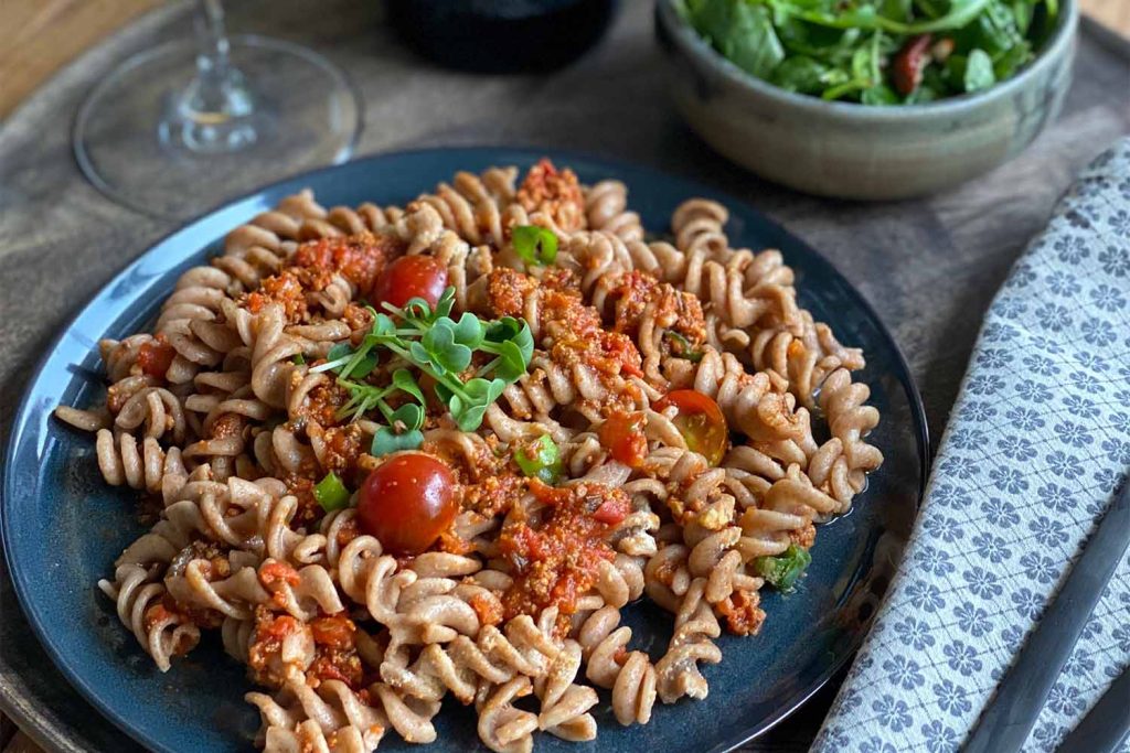 Wasser mit Salz aufkochen und die gekeimte Pasta beimengen. Du kannst sie entweder für 5-7 Minuten auf abgeschalteter Herdplatte einweichen lassen oder bei niedriger Hitze für 3 Minuten weiterköcheln. Unsere Pasta ist 100% gekeimt und bereits aufgeschlossen, deshalb benötigen die Nudeln nur 3 Minuten Kochzeit. Mit Pesto oder einer selbstgemachten Sauce mischen und fertig ist dein neues Lieblingsgericht.